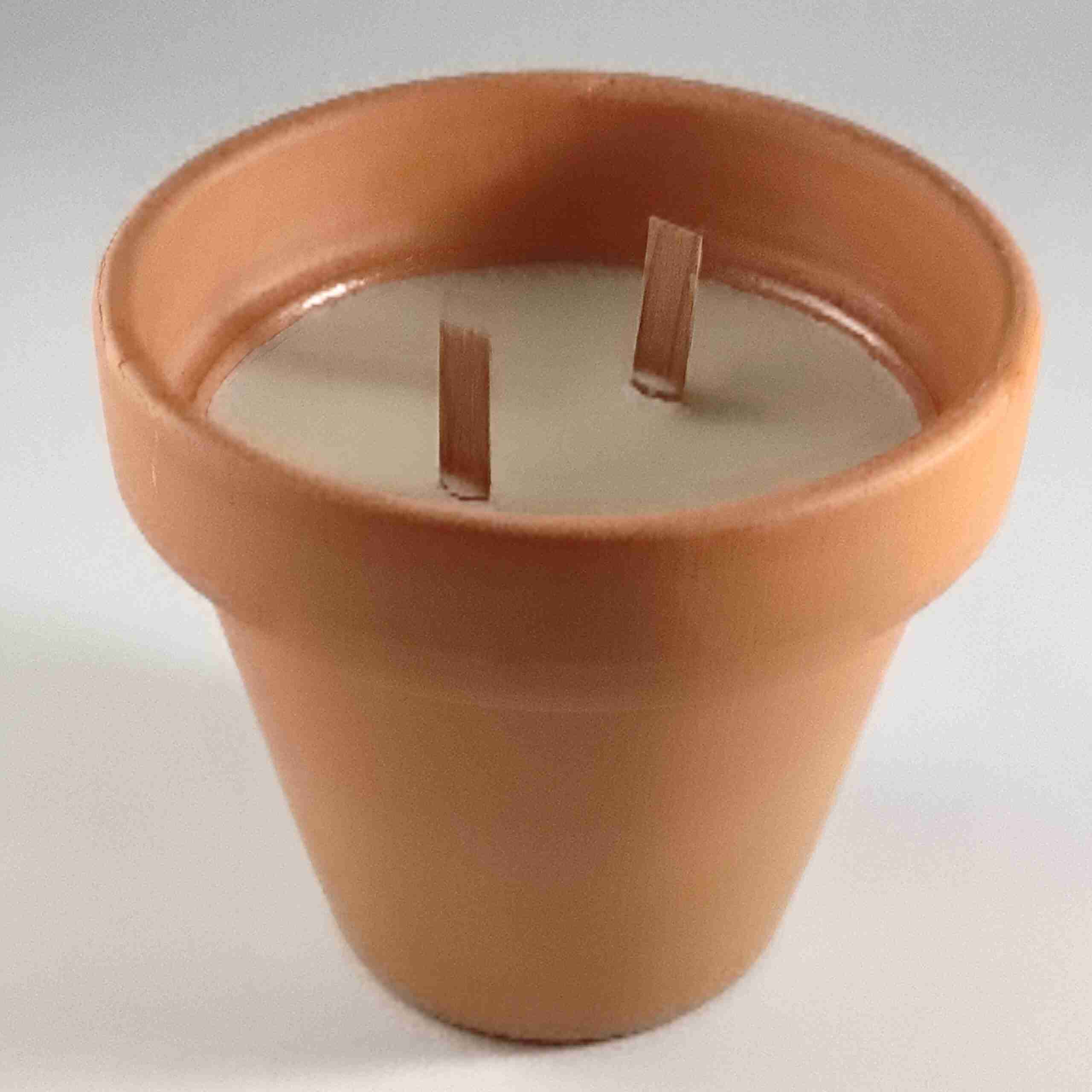 This large terracotta candle smells amazing and will fill any room with a rich fragrance of honey and oats. The dual wicks make a soft crackling sound. The candle will burn for at least 30 hours.